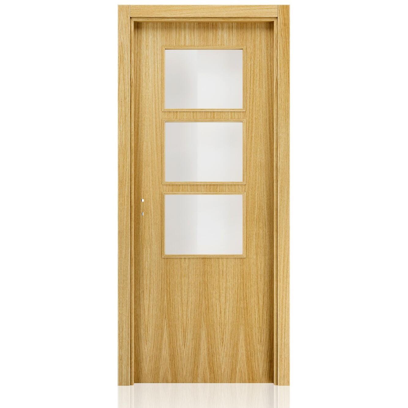 BLOCO DE PORTA CARVALHO ENVERNIZADO C/ ABERTURA PARA VIDROS 200X75CM ESQUERDA