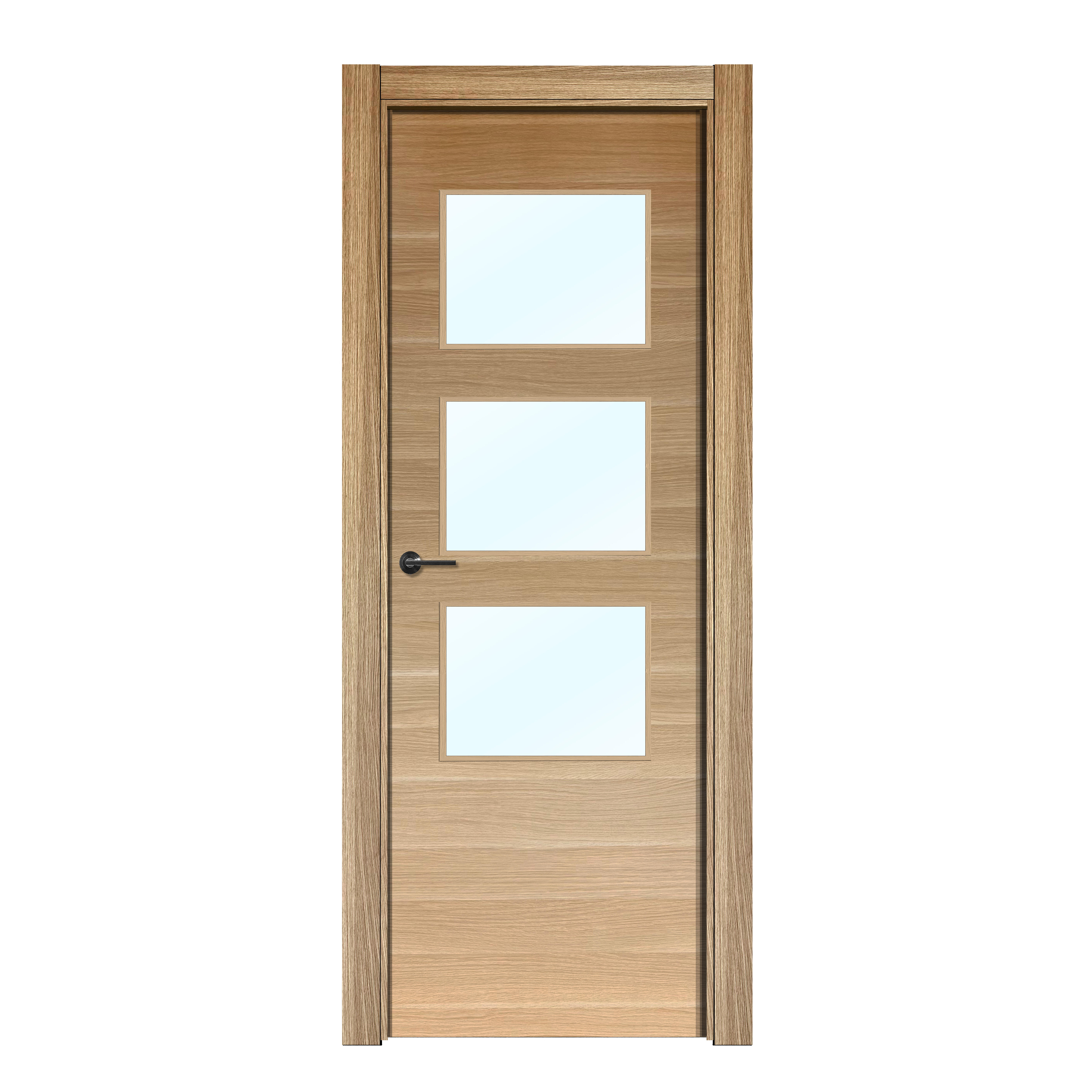 Este bloco-porta para o interior oferece uma combinação perfeita de funcionalidade e estética, com acabamento em carvalho que se integra harmoniosamente em diversos ambientes. Interior da Porta: poliestireno com MDF de 5mm nas faces. Material do Aro: MDF Hidrófugo. Altura da Folha: 200cm. Largura da Folha: 80cm. Espessura da Porta: 35mm. Dimensão do Aro: 100mmx30mm Aro extensível: em ambos os lados. Borracha no batente: sim Acabamento da Porta: revestido CPL Carvalho Horizontal. Acabamento da Aro: revestido CPL Carvalho Horizontal. Tipo de Produto: bloco porta interior. Tipo de Porta: 3 Vidros. Vidro não incluido. Modelo: CPL CARVALHO HORIZONTAL 3 VIDROS Ferragens incluidas: Dobradiças e fechadura standard com chave, acabamento niquel. Sentido de abertura: Empurrar à esquerda. Molduras: Não incluidas. Vantagens do Produto: bloco-porta com junta isofónica, proporcionando um isolamento acústico eficaz para ambientes internos. Produto de fácil instalação.