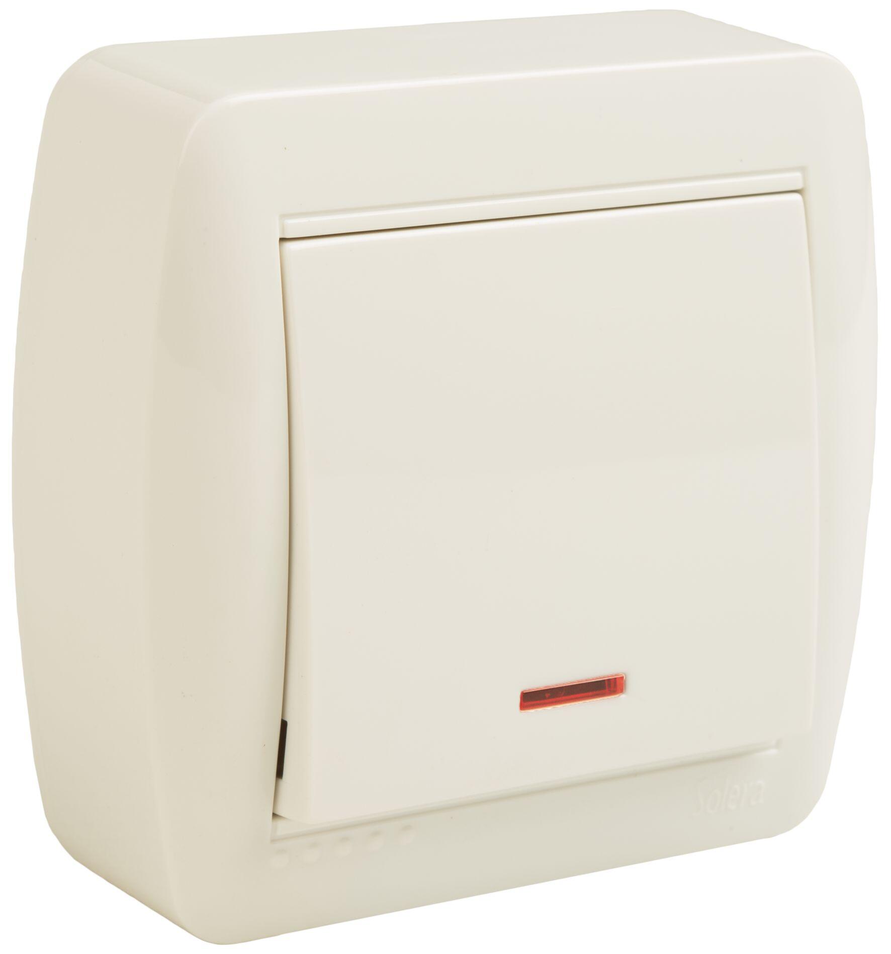 Este comutador de superfície é ideal para uma ampla gama de aplicações em ambientes domésticos e terciários, oferecendo fiabilidade e segurança. Tipo de produto: comutador / Interruptor luminoso 10AX 250V. Local de uso: interior (viviendas, escritórios, comércios). Formato: superfície, com embornamento por parafuso. Nome da série: europa. Marca: SOLERA. Cor: branco. Dimensões: 74x72x28mm. Temperatura de instalação: -5 ºC -> +60 ºC. Índice de proteção (IP): IP20. Vantagens do Produto: oferece uma instalação fácil e segura, além de apresentar resistência ao fogo, ideal para ambientes internos.