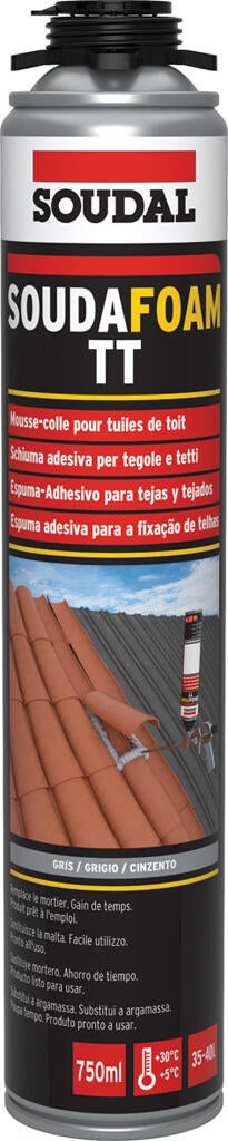 A Soudafoam TT Gun é uma espuma de poliuretano mono componente, pronta a utilizar e auto expansiva, ideal para reparações e instalações rápidas. Utilização: instalação e reparação de telhas, preenchimento de cavidades, e selagem de aberturas em construções de telhados. Vantagens: fácil e rápida aplicação, boa adesão a diversas superfícies, cura rápida e alta expansividade, entre outras características que tornam este produto muito eficiente e económico.
