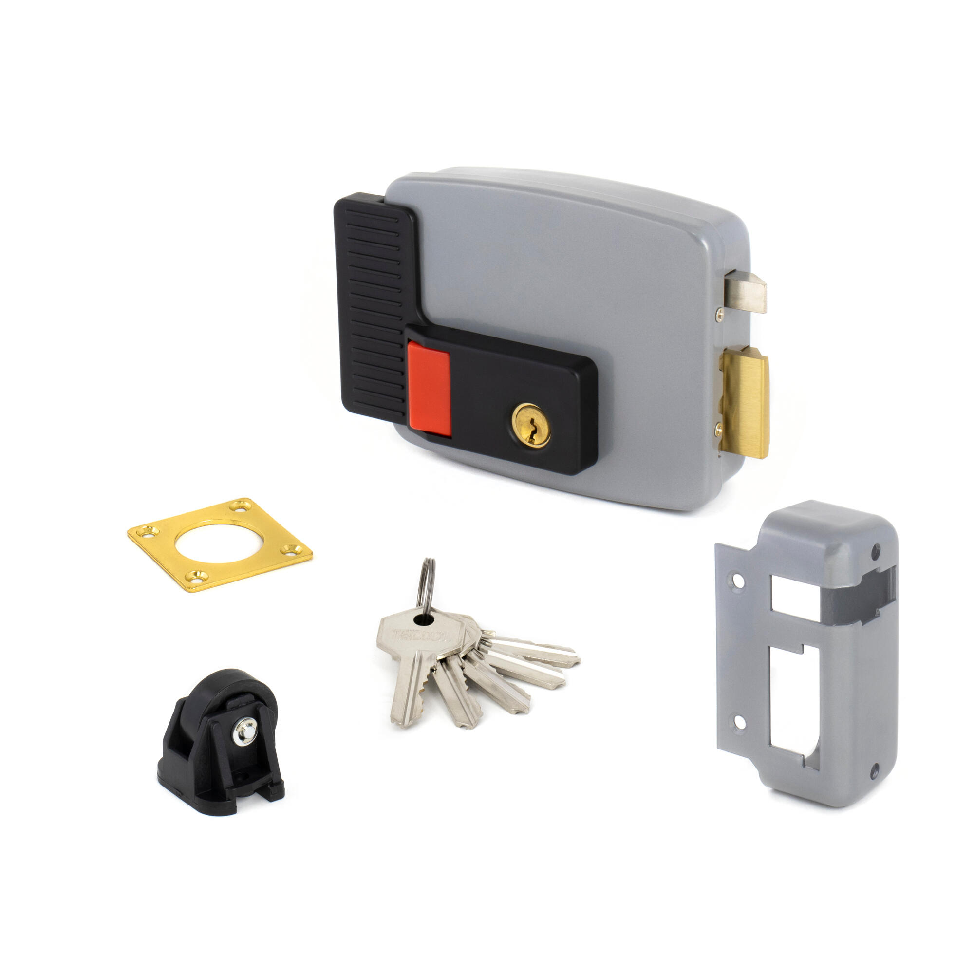 Esta fechadura elétrica é ideal para portas de madeira, oferecendo segurança e praticidade no seu dia a dia. Altura do cofre: 10,7cm. Largura do cofre: 13cm. Material do cofre: aço. Espessura da caixa: 5cm. Fechadura fornecida: fechadura elétrica. Trinco reversível: não. Quantidade de chaves fornecidas: 1. Material da caixa: aço. Cor da frente: cinza / prateado. Tipo de produto: fecho eletromecânico. Vantagens do Produto: esta fechadura elétrica permite abertura fácil através de disparo elétrico ou chave e botão interior, sendo ideal para sistemas de controlo de acessos e garantindo segurança adicional.