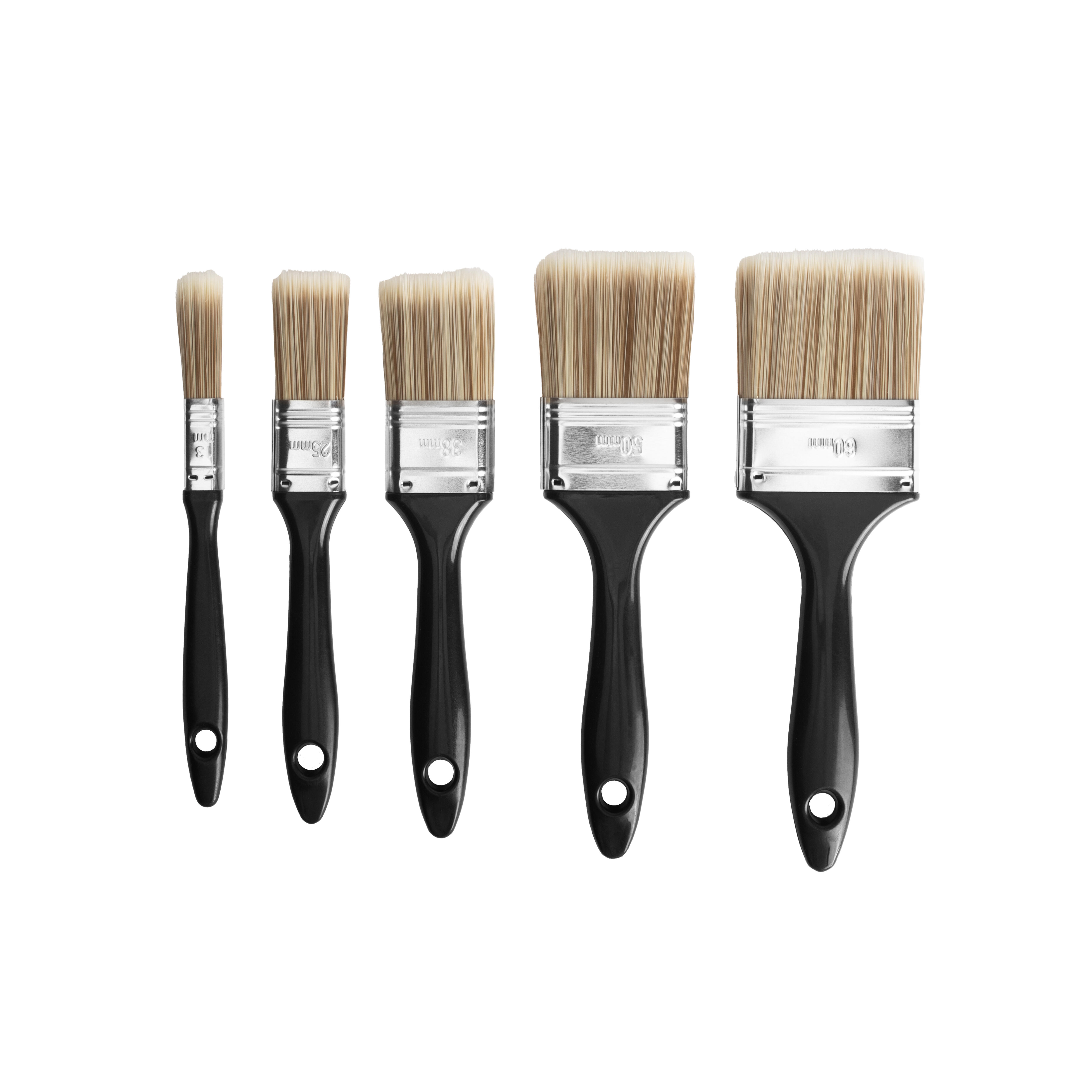 Este lote de 5 trinchas é indicado para trabalhos de bricolage, aplicação de esmaltes, lacas e primários, tanto com tintas acrílicas como vernizes, sendo ideal para trabalhos de precisão e também para cobrir grandes superfícies, graças à variedade de largura das trinchas (13mm a 60mm). Vantagens do produto: A sua versatilidade graças aos diversos tamanhos, a facilidade de utilização devido aos seus cabos ergonómicos e a sua boa performance já que é constituída por cerdas sintéticas com dureza média-alta que garantem uma aplicação suave e um bom acabamento.