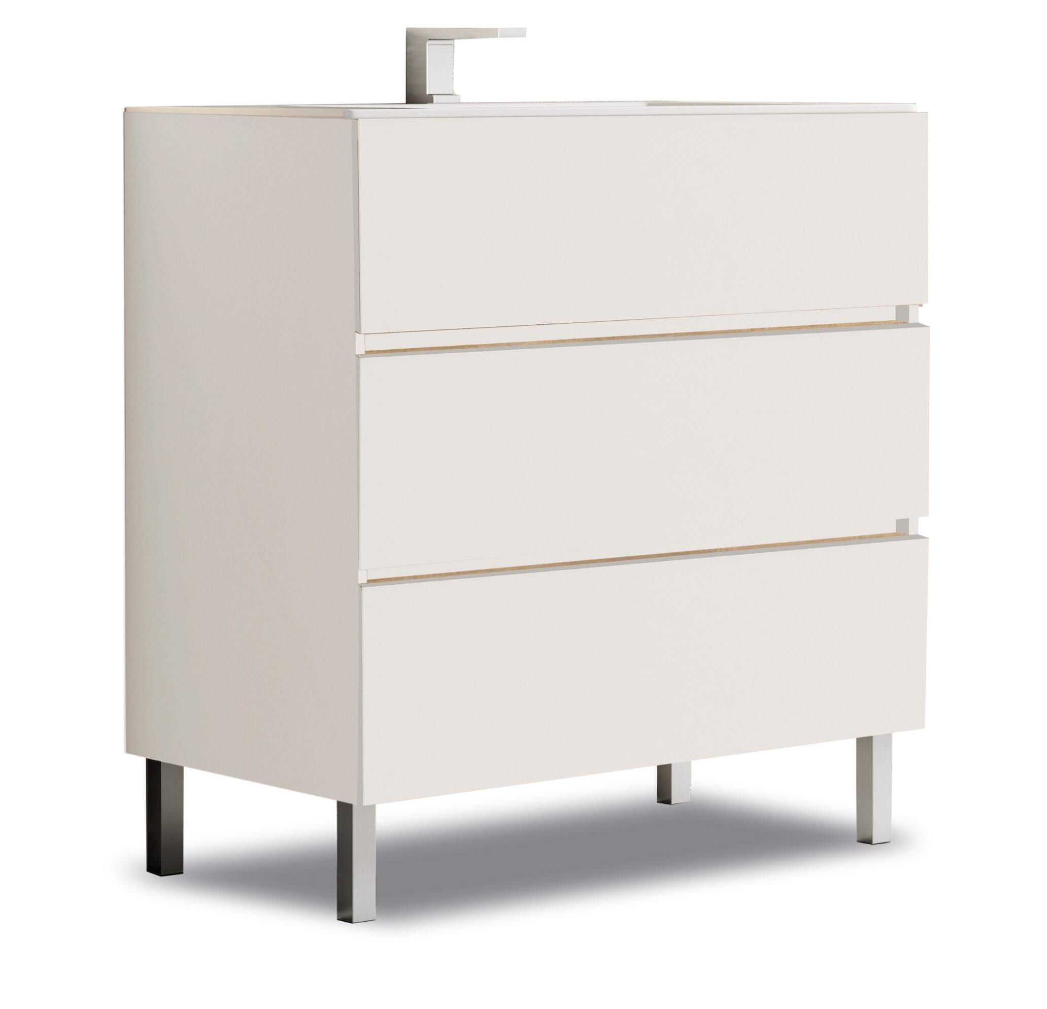 Móveis de casa de banho, modelo Boston, na cor branca. Medidas: 60x45x80 cm. Distribuição com três gavetas. Material: melamina. Espessura da folha: 16 mm. Acabamento: liso. Fecho: almofadado. Vantagens do produto: Os móveis vêm montados, facilitando a instalação. Espelho, bancada, torneira e válvula são vendidos separadamente.