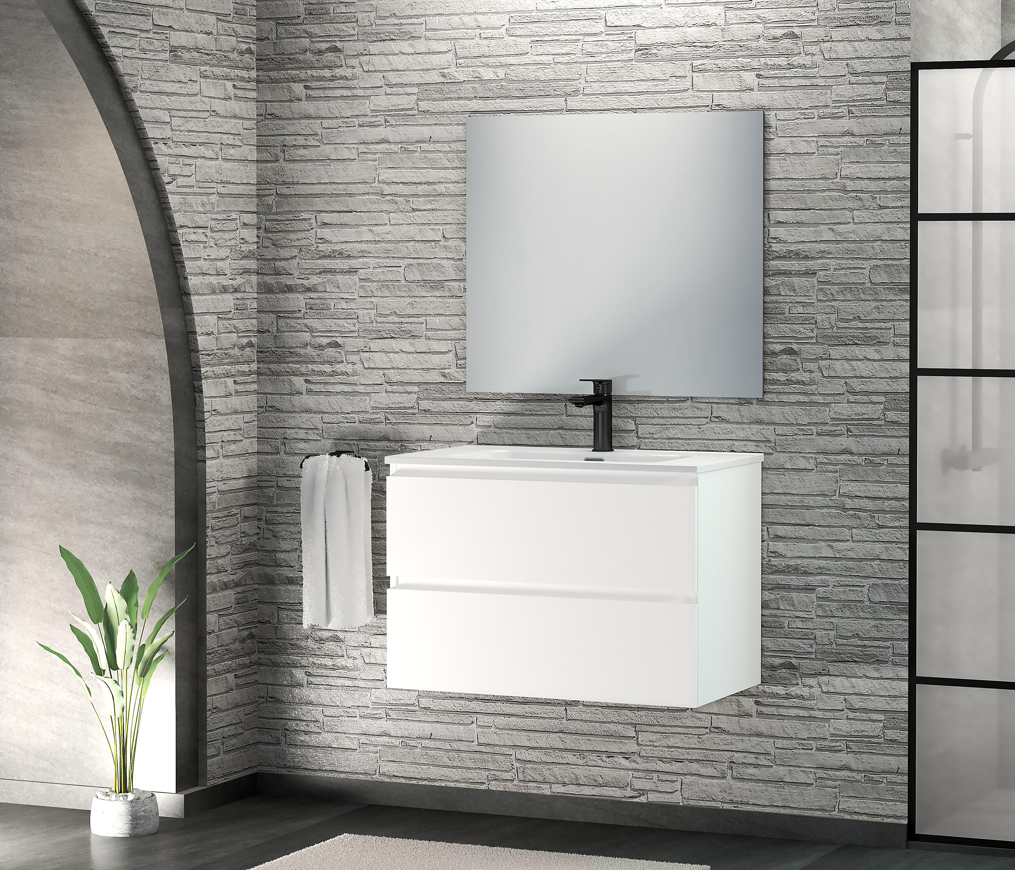 Móveis de casa de banho suspensos, modelo Maya, na cor branca. Medidas: 80x39x54,5 cm. Distribuição com duas gavetas. Material: melamina. Espessura da folha: 16 mm. Acabamento: liso. Fecho: almofadado. Vantagens do produto: Móveis montados, facilitando a instalação. Gavetas com acabamento têxtil cinza antracite. Espelho, bancada, torneira e válvula são vendidos separadamente.