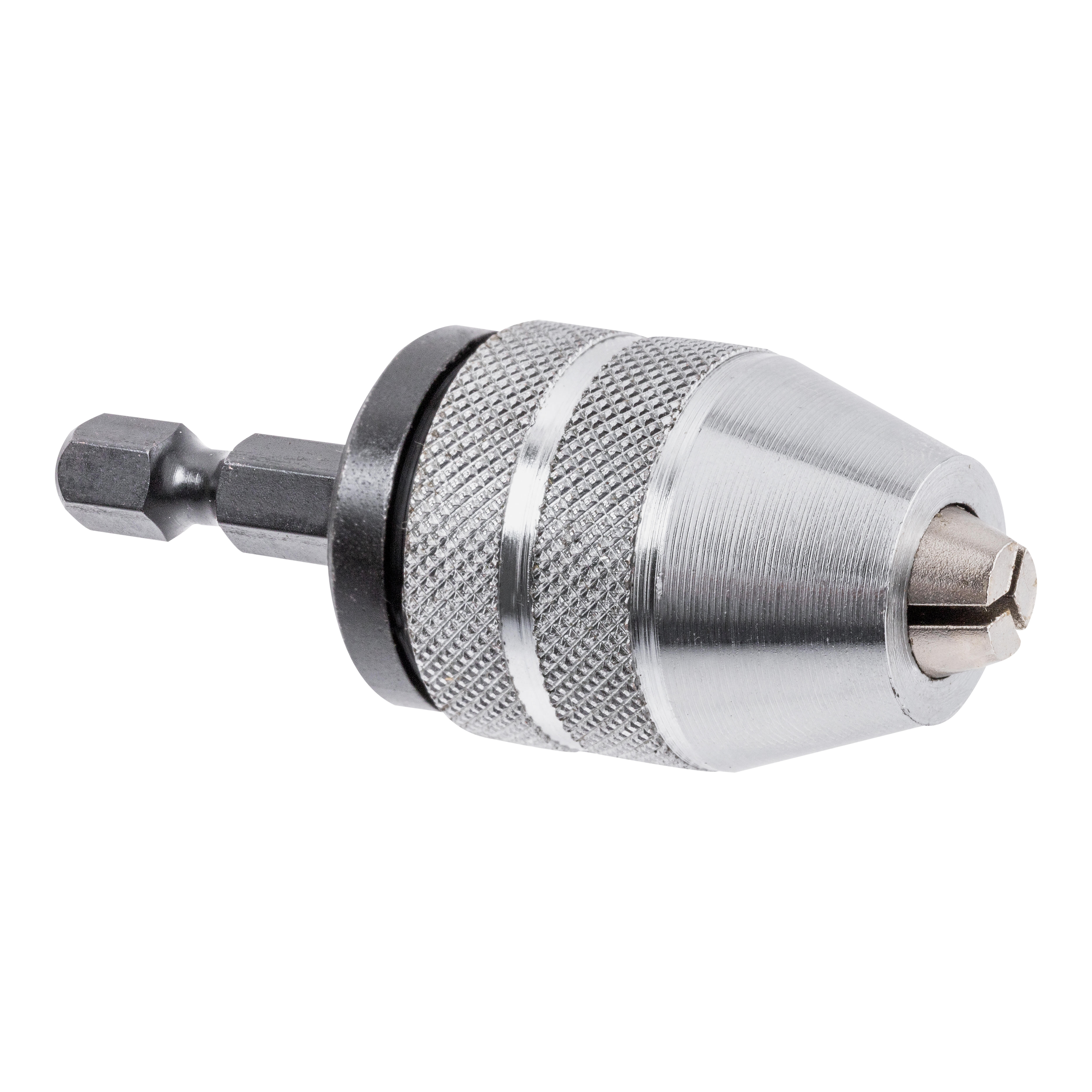 Este porta-brocas sem chave permite uma utilização fácil e rápida, sendo ideal para trabalhar com brocas de vástago cilíndrico e hexagonal. Tipo de aperto: sem chave. Material: metal. Vantagens do produto: O porta-brocas proporciona um manuseio cómodo e permite uma fixação fácil e rápida com uma só mão, sendo compatível com a maioria dos berbequins convencionais. EAN: 3165140085434.
