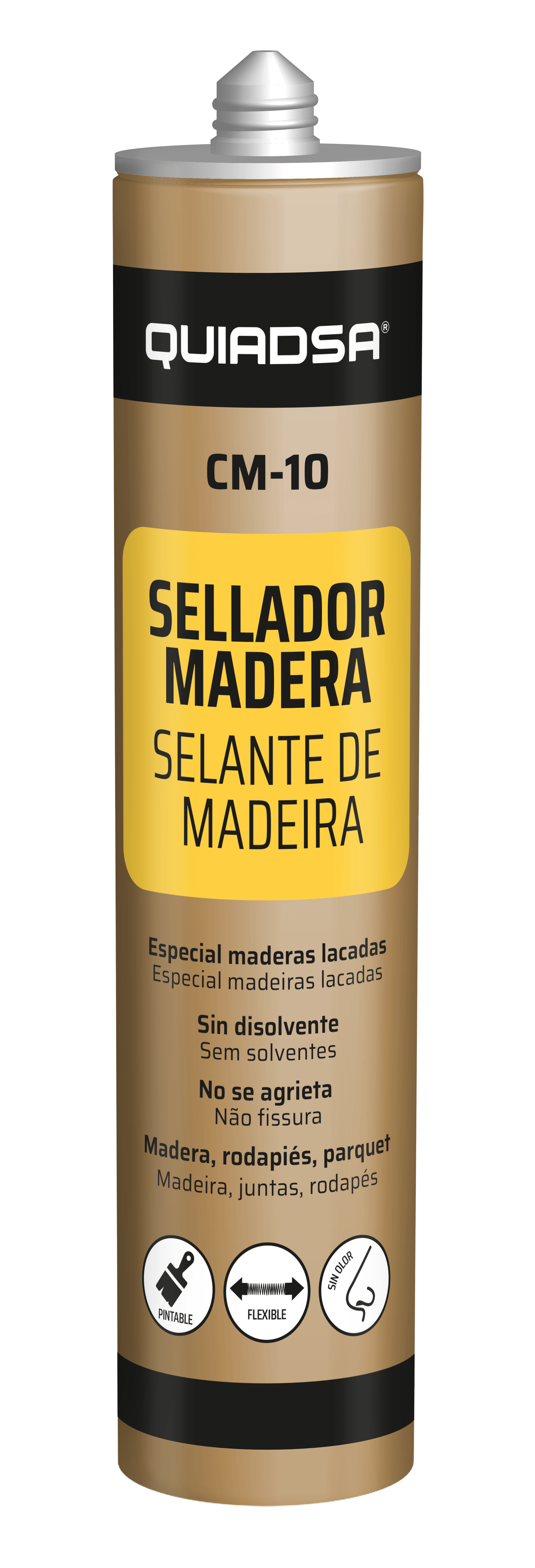 O selante acrílico Quiadsa é uma solução altamente eficaz para vedação de juntas em superfícies de madeira, proporcionando uma aplicação fácil e acabamento de alta qualidade. Descrição e Usos: ideal para selar juntas e fissuras, especialmente em carpintarias de madeira, como armários embutidos, janelas e portas. Descrição comercial do fornecedor: É um selante e adesivo elástico monocomponente à base de resinas acrílicas em dispersão, com uma excelente aderência a materiais porosos comuns na construção. Repintura: após aproximadamente uma hora de aplicação, é compatível com tintas e vernizes, permitindo que seja pintado ou envernizado sem afetar a aderência. Vantagens do produto: apresenta alta elasticidade, secagem rápida, baixo odor e não contém solventes, sendo ideal para utilização em interiores.