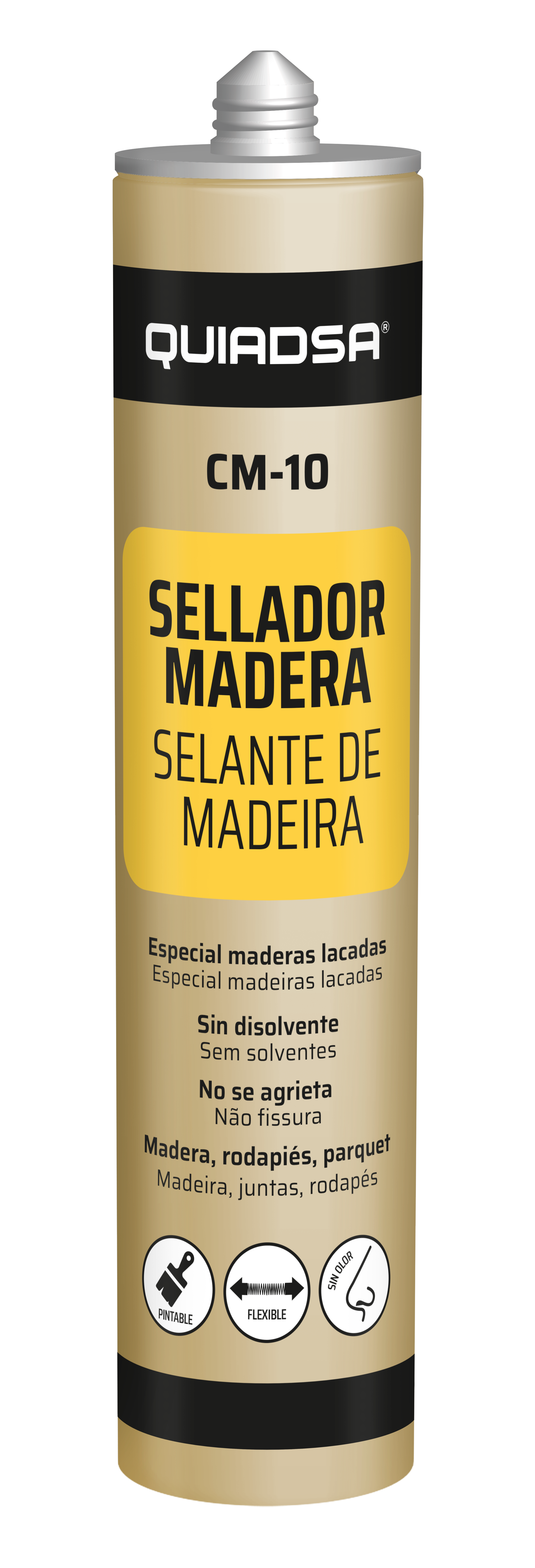 O Selante Acrílico para Madeira Quiadsa é um produto versátil, ideal para diversas aplicações em madeira, como vedação de juntas e fissuras. Este selante monocomponente é especialmente formulado para ser pintável, não contém solventes e apresenta excelente aderência a superfícies porosas. Descrição e Usos: indicado para vedação em carpintarias de madeira, junta entre rodapés e pavimento de madeira; adesivo para madeira. Descrição comercial do fornecedor: massa elástica de alta qualidade, sem fissuras, de baixo odor e com secagem rápida, adequada para aplicação em condições de temperatura entre +5°C e +35°C. Repintura: após aproximadamente uma hora de aplicação, pode ser pintado ou envernizado sem afetar a aderência. Vantagens do produto: elasticidade, fácil aplicação e compatibilidade com diversos tipos de tintas e vernizes.