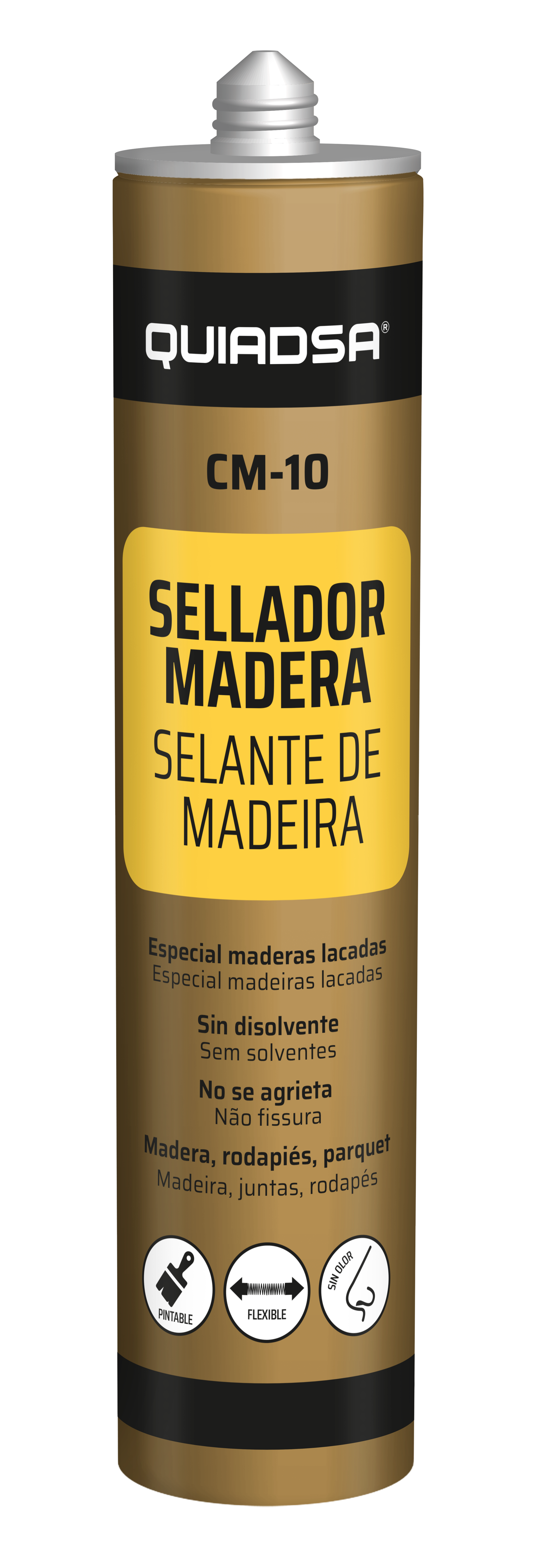 Este selante acrílico de alta qualidade é ideal para vedação de juntas em superfícies de madeira, oferecendo uma aplicação fácil e rápida. Descrição e Usos: indicado para vedação de fissuras, juntas e rodapés em pavimentos de madeira, como parquet e pavimento laminado; também pode ser utilizado em carpintarias. Descrição comercial do fornecedor: selante e adesivo elástico à base de resinas acrílicas em dispersão, que proporciona uma excelente aderência, sendo pintável e sem solventes. Repintura: compatível com tintas e vernizes, permitindo repintura após aproximadamente uma hora de aplicação. Vantagens do produto: elasticidade, rápida secagem e baixo odor, sem formação de fisuras.