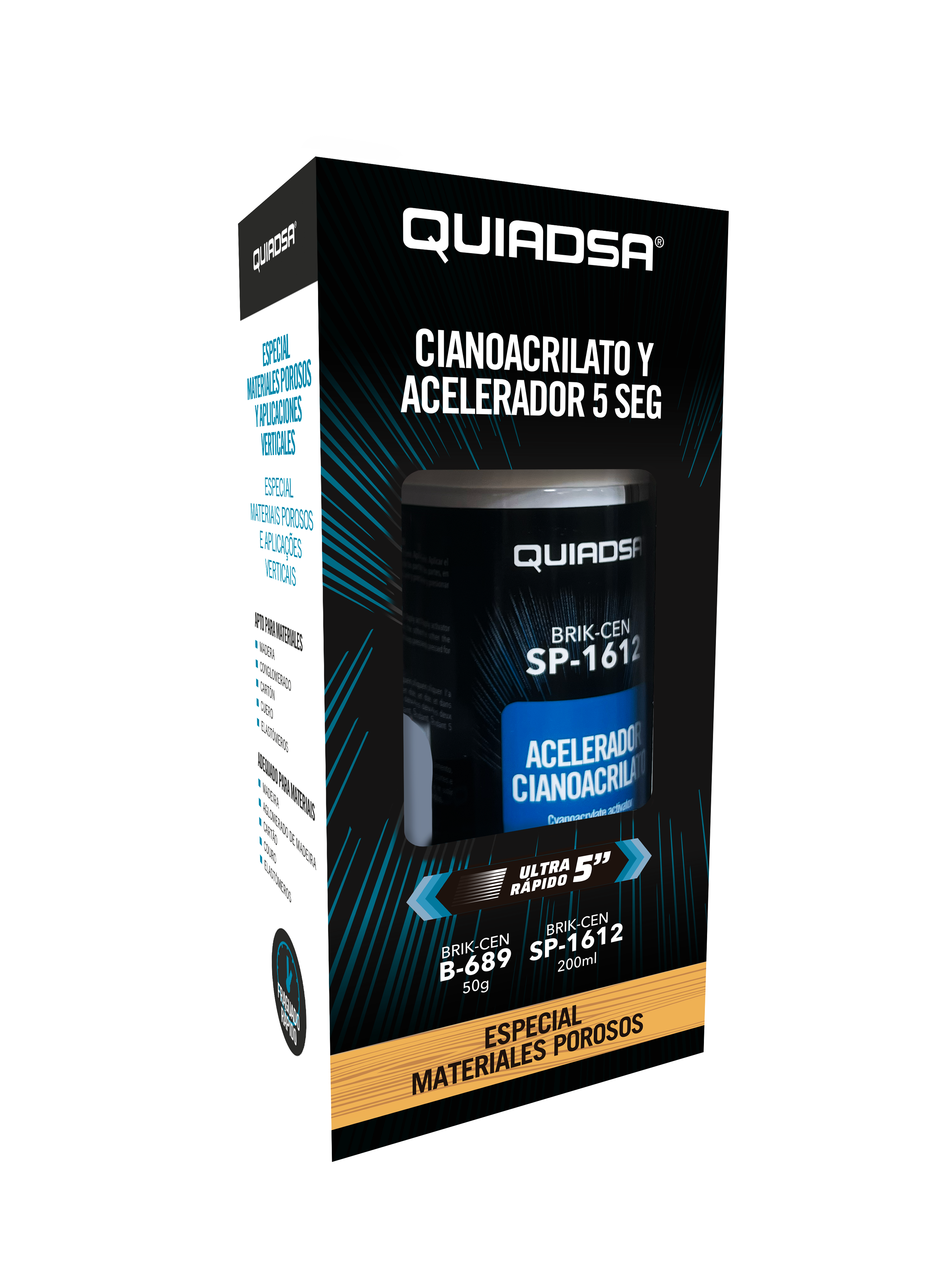 SUPER COLA CIANOCRILATO + ACELERADOR SUPERFÍCIES POROSAS B-689 QUIADSA 50G